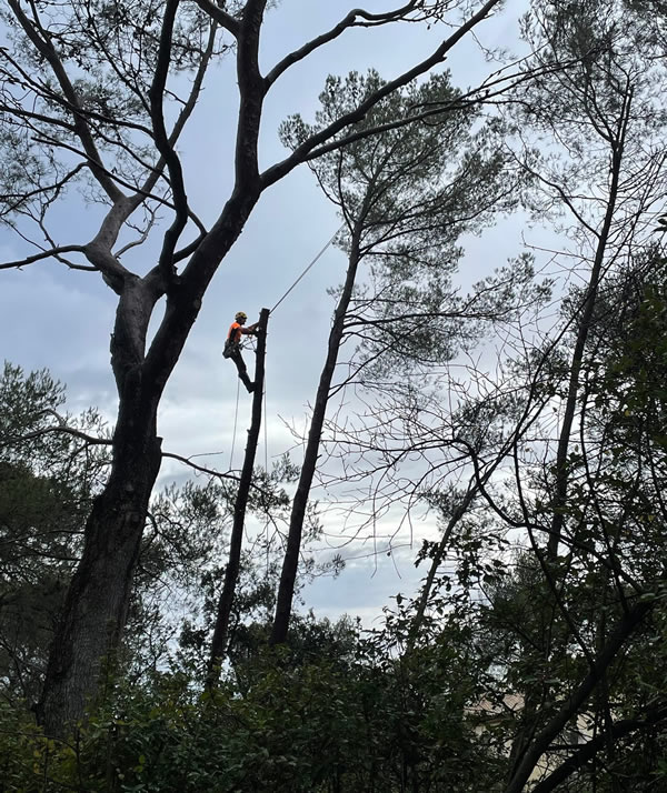 Taille bois mort et démontage de quelques Pins d’Alep.