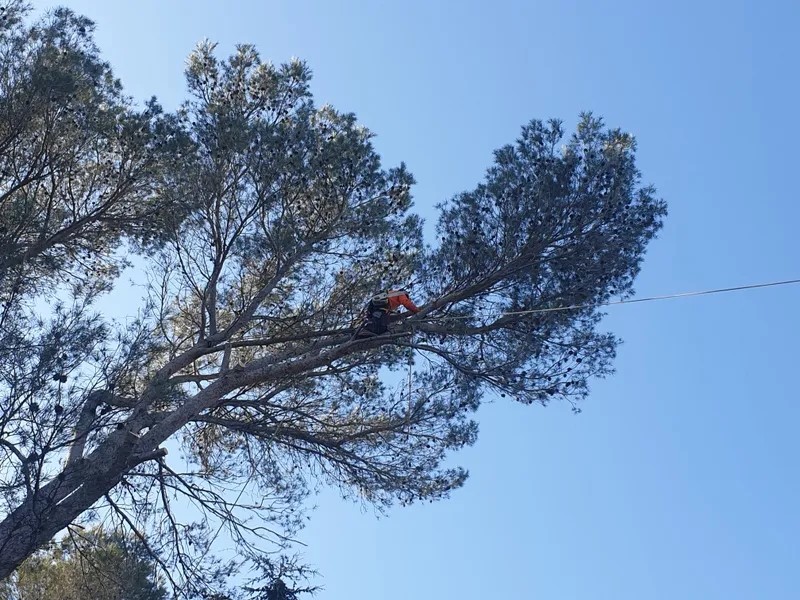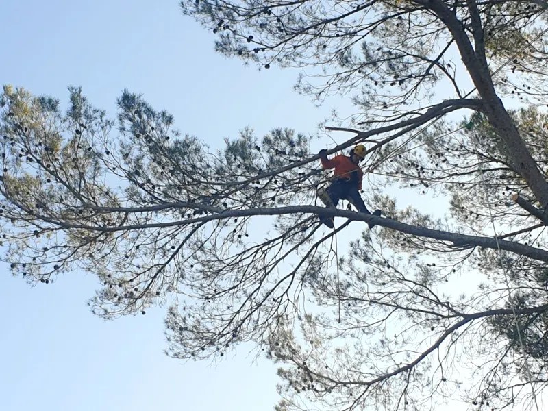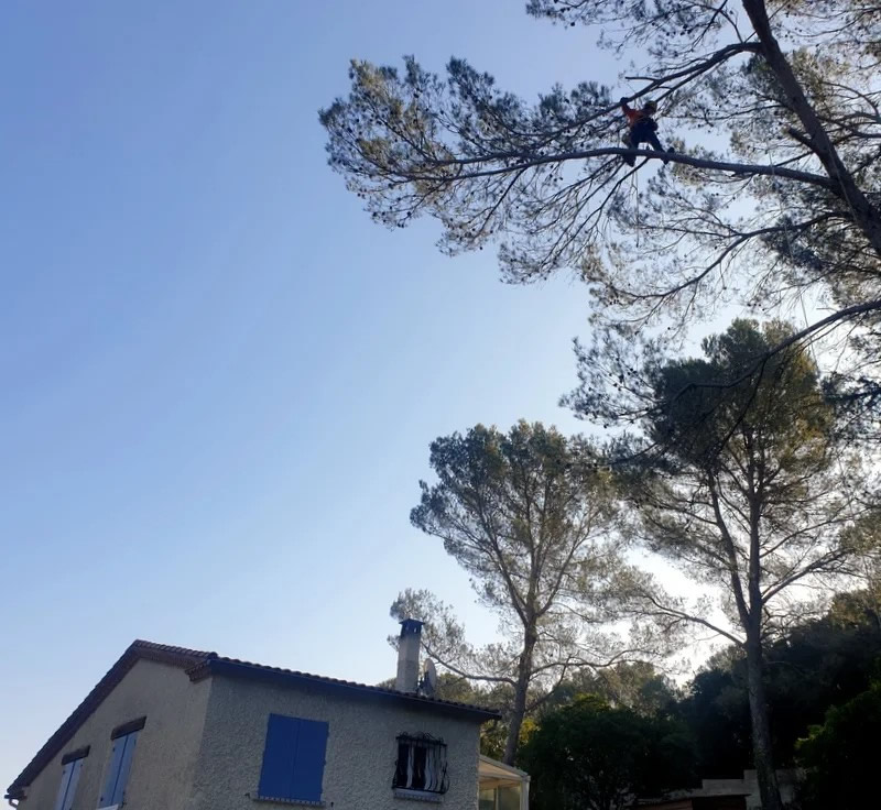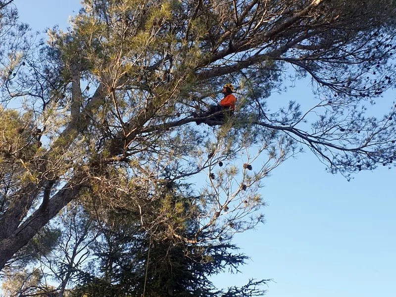 Du très bon travail notamment sur un pin d’Alep très élevé près de notre piscine.